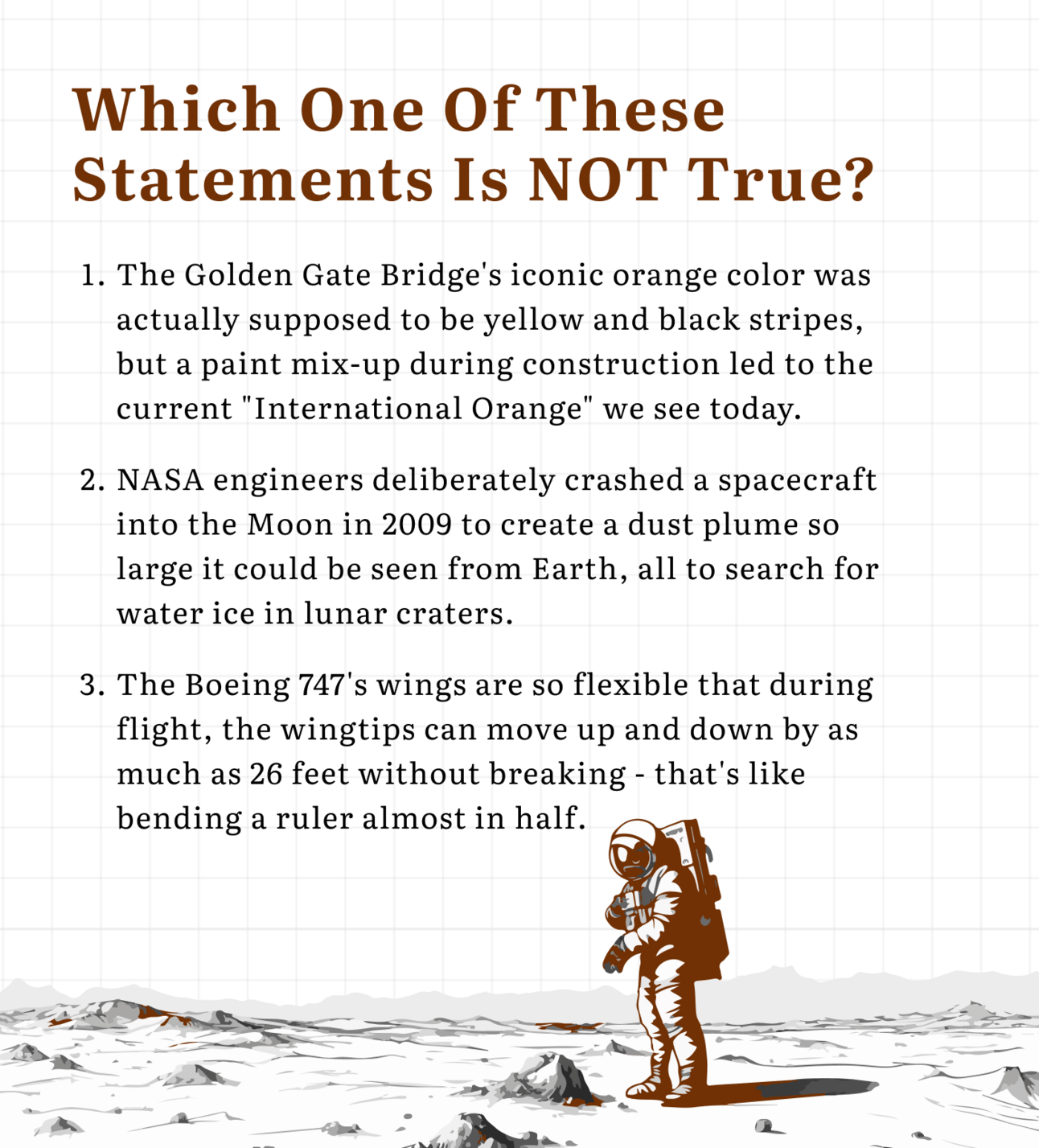 Think you know your engineering facts? Well, here are three bold statements - two are true, and one is a complete fabrication.