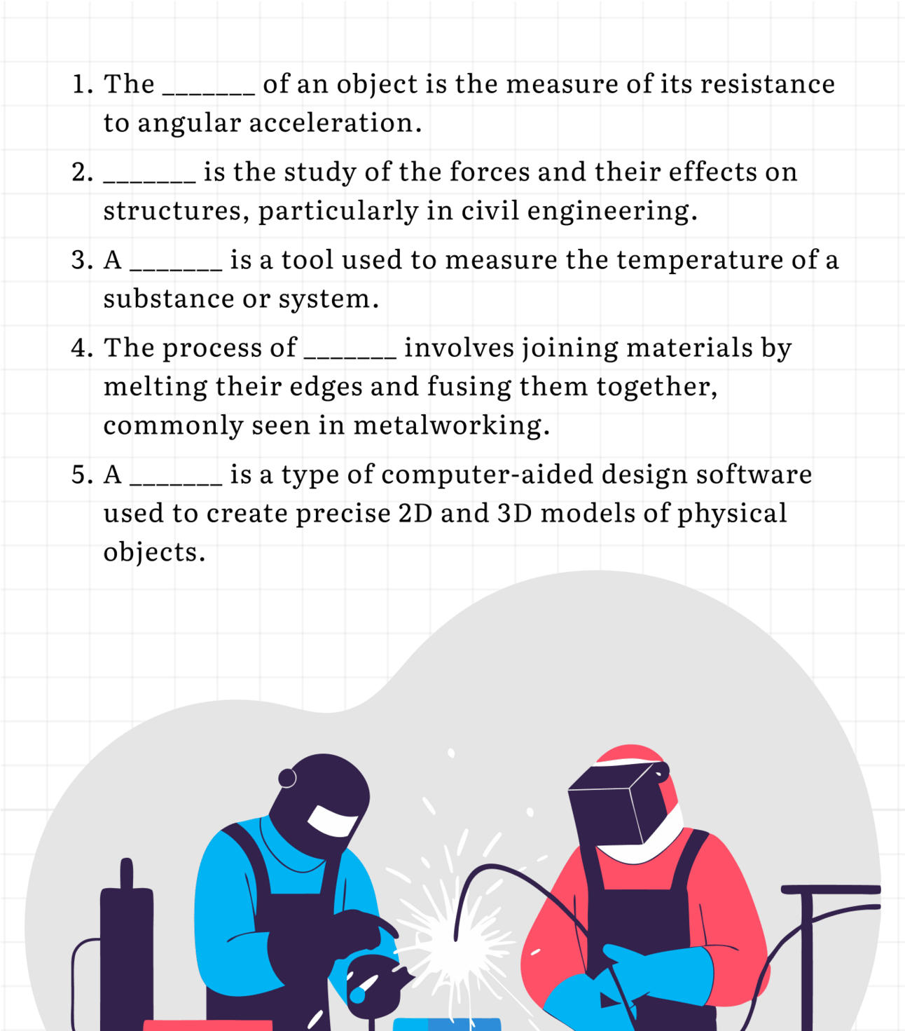 Below are sentences with missing engineering-related words. The definitions of the missing words are provided at the bottom. Fill in the blanks with the correct words based on their meanings!