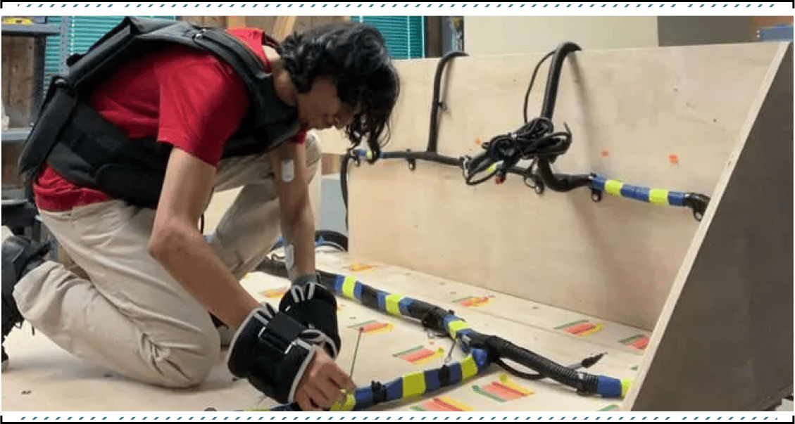 To test it out, they rounded up a bunch of people to play pretend factory worker for a day. And because that wasn't fun enough, they made them wear weighted vests too.