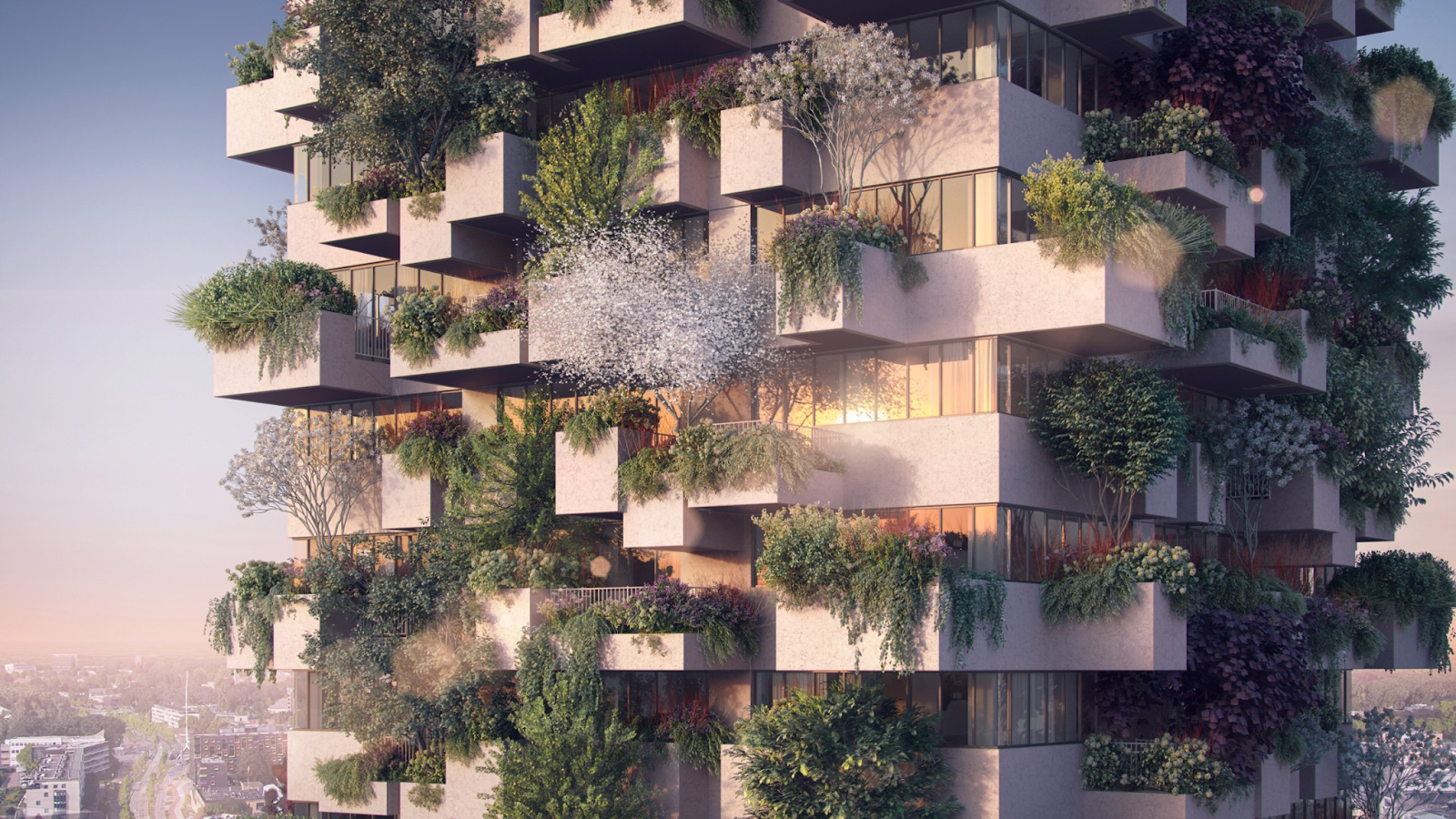 A building filled with plants jutting out of it. Cool? Meh