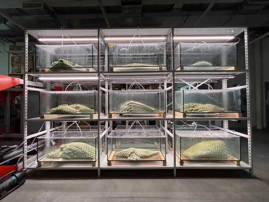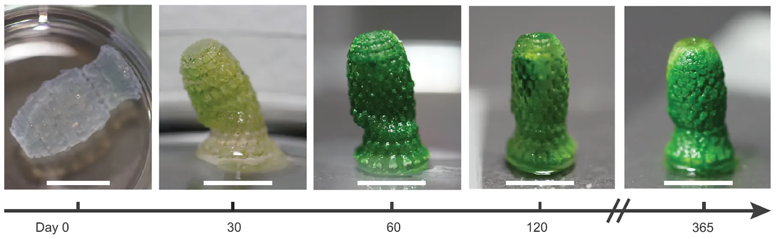 Then they used 3D printing to optimize the geometry: increasing surface area, making sure light can penetrate deep into the structure, and creating pathways for nutrients to flow naturally through capillary action.