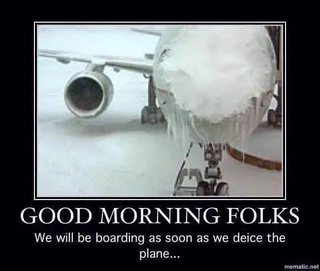 Delays stink, but hey, ice-free wings > on-time takeoff.