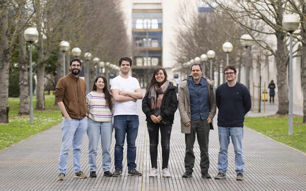 The research team, at UPNA. From left to right, Iñigo Ezcurdia, Iosune Sarasate, Unai Fernández, Elodie Bouzbib, Asier Marzo and Iván Fernández. Credit: UPNA.